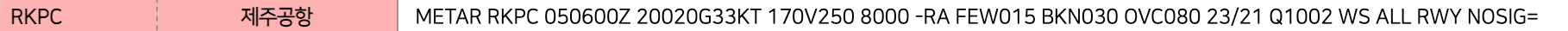 다음으로는 제주공항의 항공 기상 관측 전문을 살펴보겠습니다.