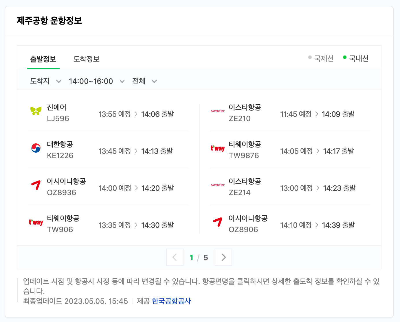 위에서는 항공기 운항 관련 전문가가 확인하는 기상 사이트를 통해 제주공항의 예보를 확인했는데요, 일반인이 보기에는 다소 어려운 용어도 많고, 약어도 많을 뿐더러 시간도 우리가 시계를 통해 보는 시간이 아니라 보기가 어렵습니다. 그렇다면 일반인이 시간대별로 자세한 기상을 확인하려면 어떻게 해야 할까요?